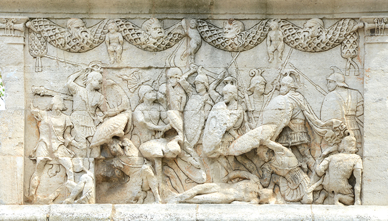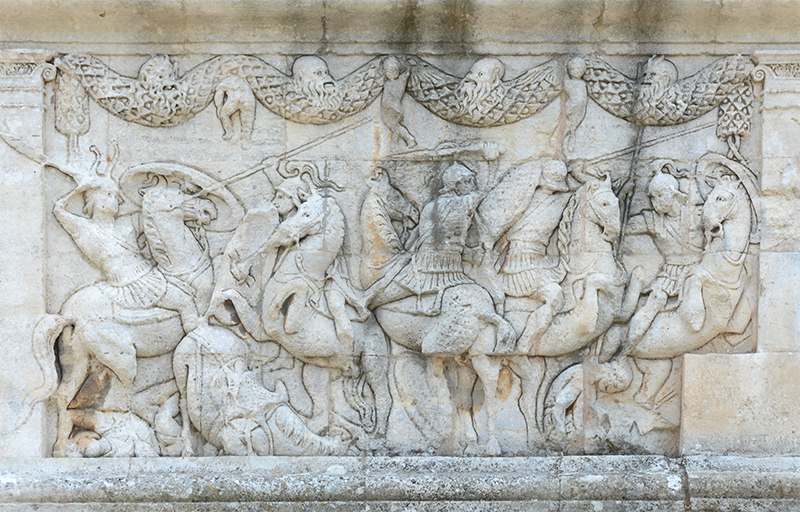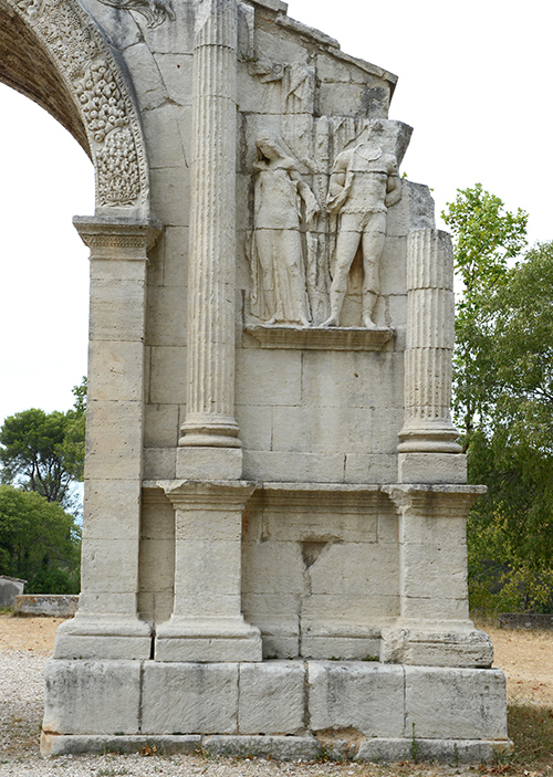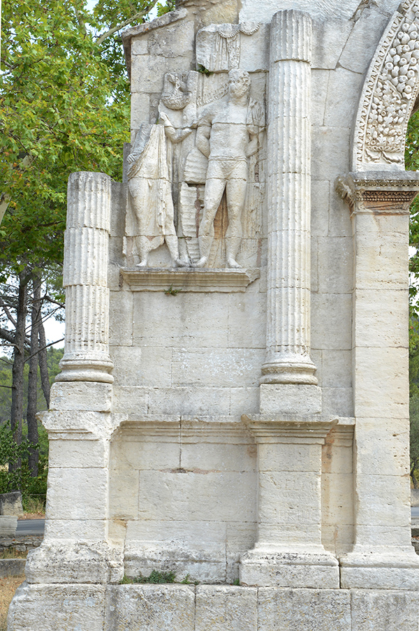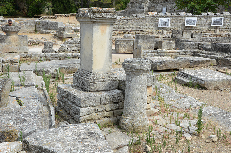 Photos : les Salyens commencent à s'implanter sur le site à partir du VIème siècle avant notre ère. Devenue capitale des Glaniques, un des peuples de l'antique Provence, Glanum est aujourd'hui un ensemble archéologique de premier plan. La ville s'hellénisa au contact de Marseille, se dota de monuments publics grandioses sous l'influence romaine puis disparut vers 270, victime d'invasions barbares. Les fouilles entreprises ont permis de mettre à jour un quartier d'habitations avec maison à cour centrale bordée de colonnes, des rues avec égouts, des mosaïques, des thermes ainsi que le forum, qui témoignent d'un certain raffinement.