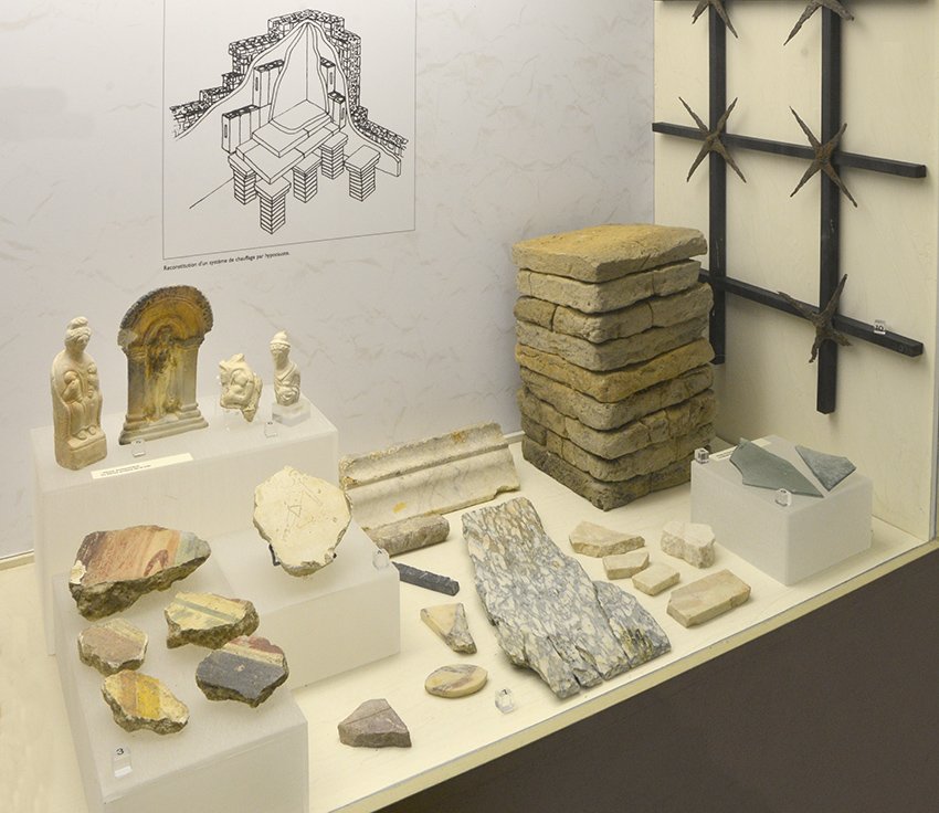 mots-clés des images de la page : Vénus sortie des eaux ou « Vénus anadyomène » - morceaux de fresque - hypocauste - marbre - corniche - grille - verre - poteries - vases - appliques - raccord tuyaux